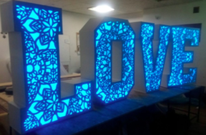 • Ażurowy napis LOVE w kolorystyce RGBW.